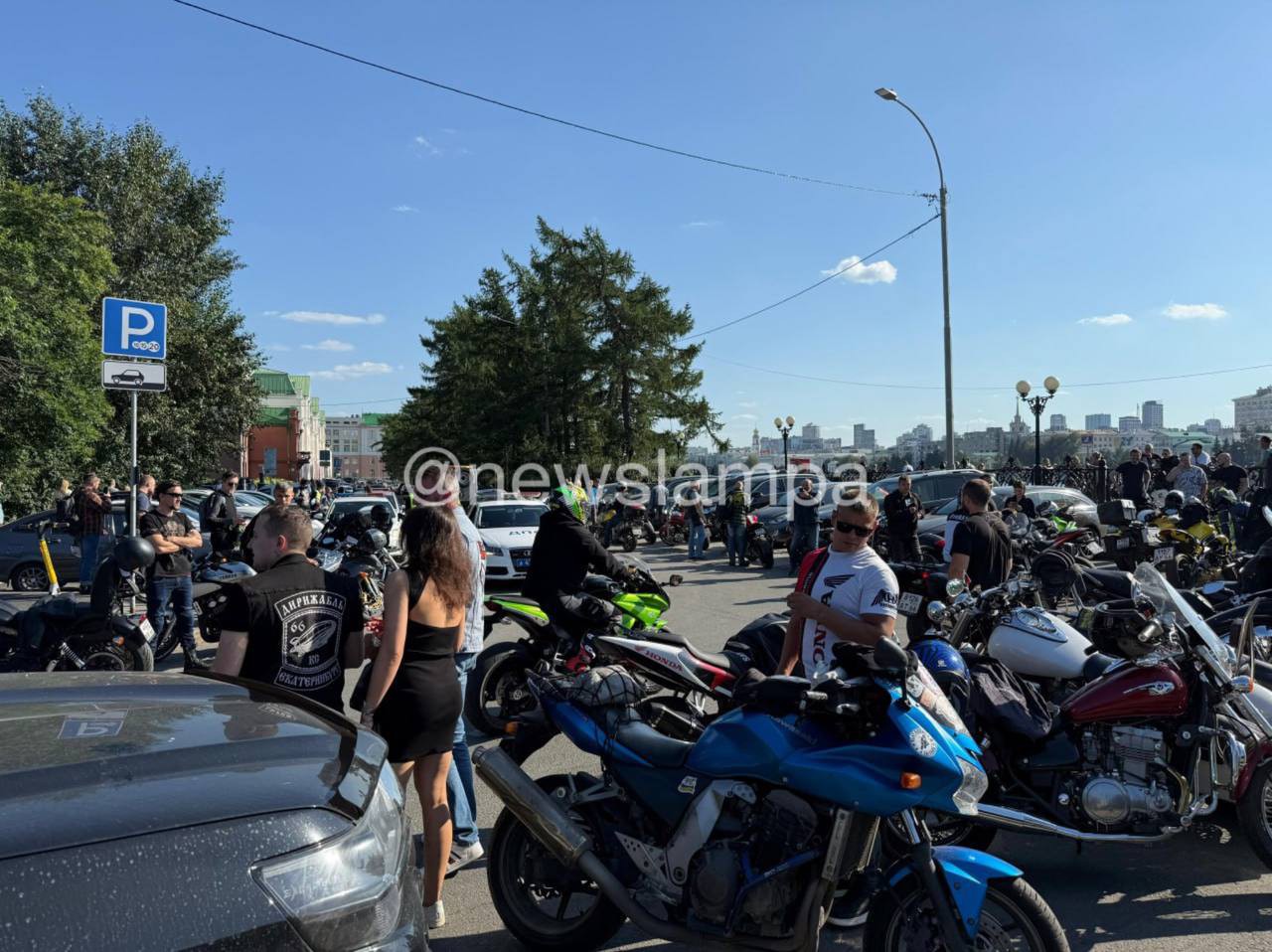 Понедельник, 4 августа, 18.56 Байкеры собрались в центре Екатеринбурга из солидарности с покалеченной автомобилистом байкершей