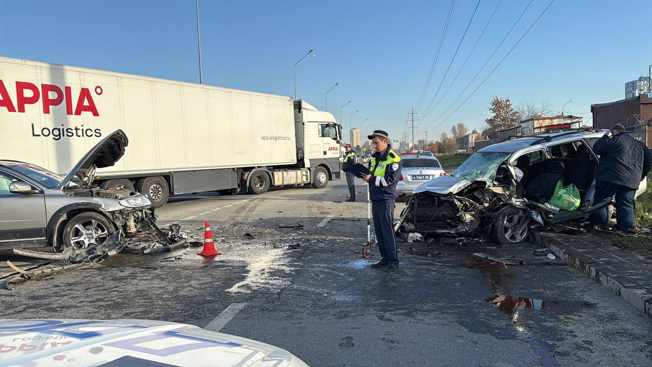 Понедельник, 6 октября, 20.43 В Екатеринбурге при столкновении трёх автомобилей пострадали три человека