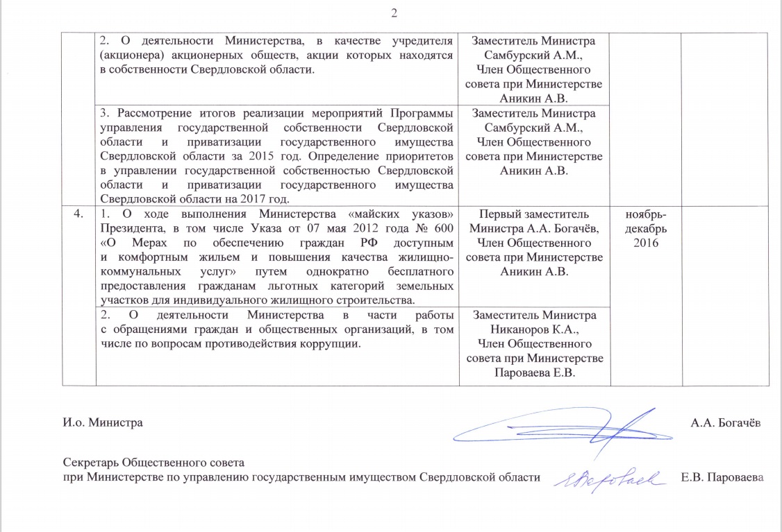 - Об итогах реализации мероприятий Программы управления государственной собственностью Свердловской области и приватизации государственного имущества за 2015 год, определение приоритетов на 2017 (август-сентябрь),