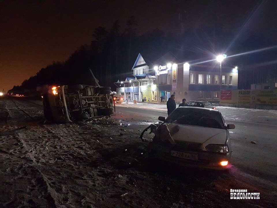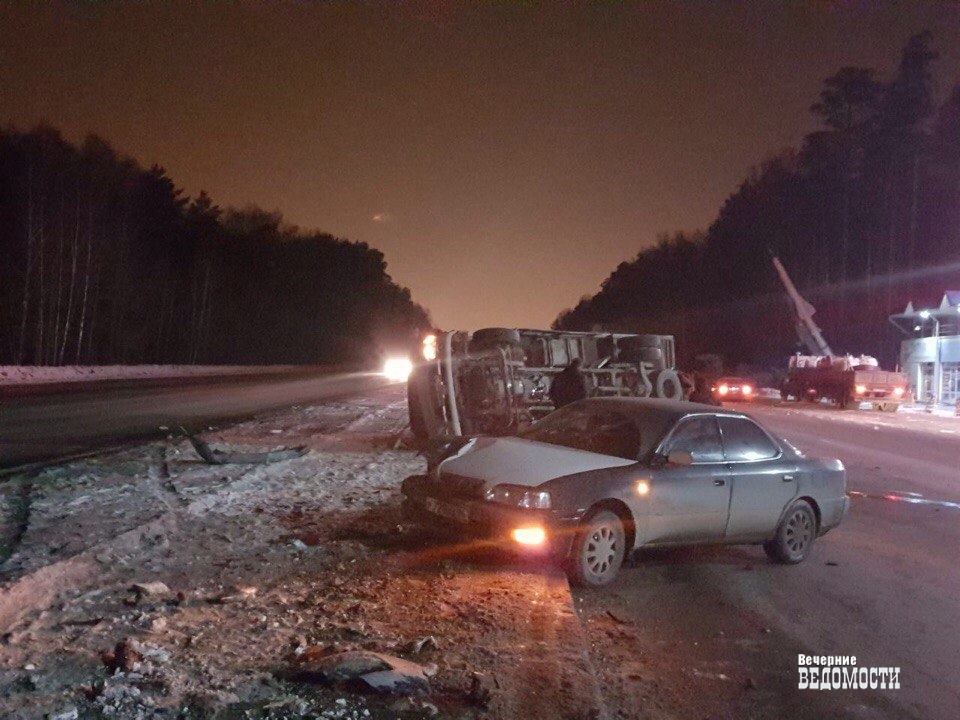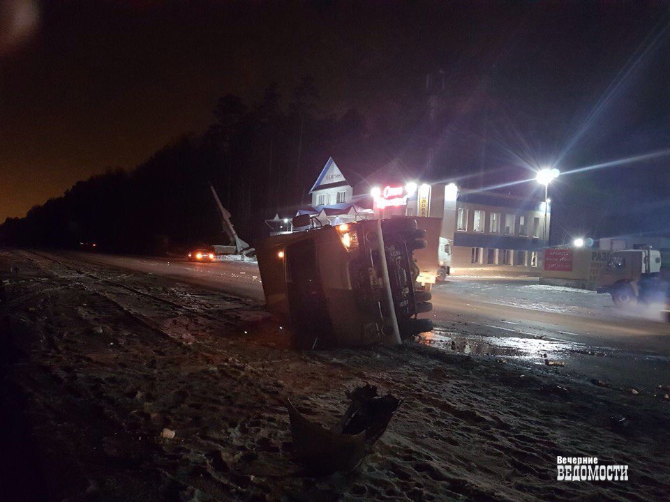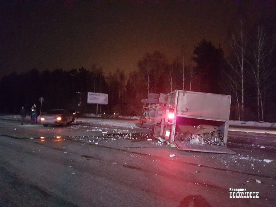 На трассе под Екатеринбургом опрокинулся фургон с пивом