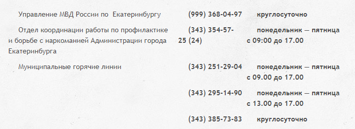 Акция стартует 12 марта и продлится до 23 марта. Помимо информации о распространении наркотических средств, екатеринбуржцев также призывают сообщать о появлении на фасадах и заборах надписей с контактами наркодилеров. Обращаться следует по номерам телефонов, указанных ниже.