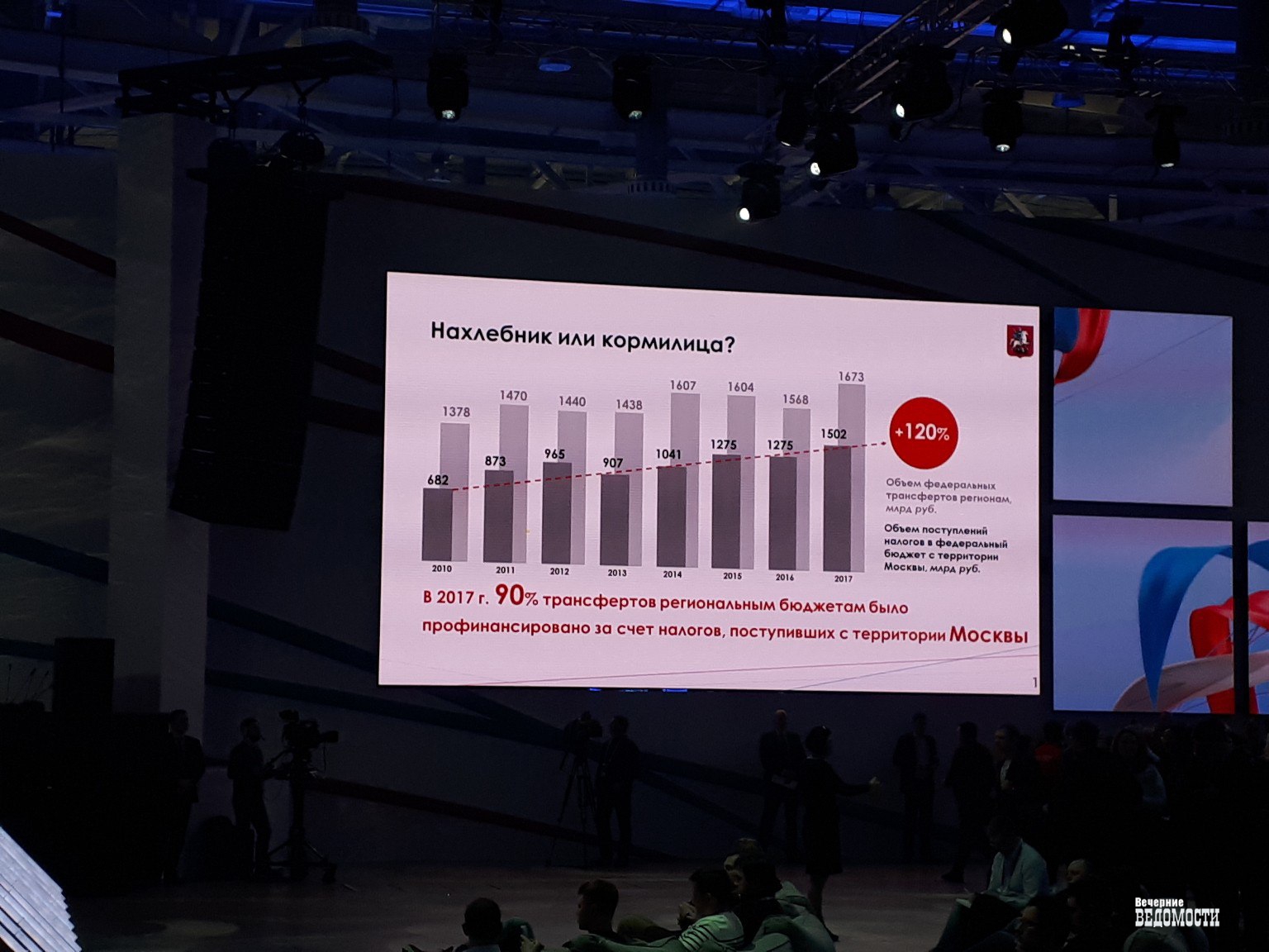Более того, как выяснилось, каждый десятый российский пенсионер получает пенсии за счет отчислений москвичей и каждый человек, который приходит в нашей стране в больницу, получает медицинскую помощь также за счет отчислений москвичей. Сергей Собянин также выразил мысль, что если «не будет развиваться Центральный округ — не будет развиваться и Дальний Восток». Мероприятие для возрастной категории 18+