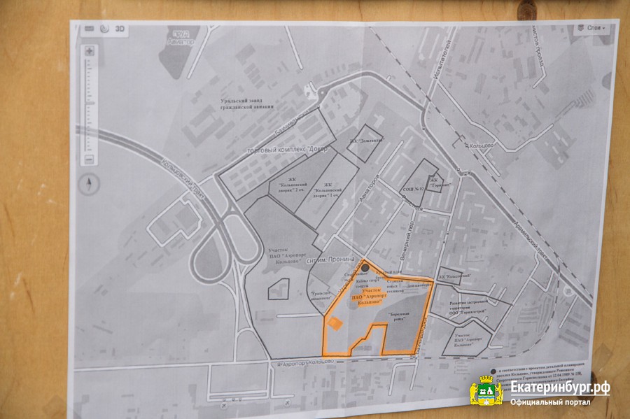 Стоит отметить, что, по словам сити-менеджера, предложили реализовать проект строительства многофункционального спортивного комплекса с бассейном и ледовой ареной аэропорт и ещё ряд компаний. Однако присутствующий на объезде гендиректор ЕМУП «Специализированное управление эксплуатации и реабилитации жилья» Виктор Карташев заявил, что есть проблема. Заключается она в том, что земля, где планируется возвести объект, принадлежит аэропорту Кольцово.