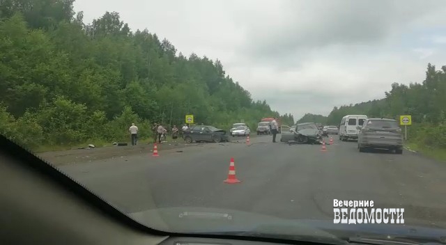 Сегодня, 11 июля, около 11 часов на 175-м километре Серовского тракта между Кушвой и Нижним Тагилом произошло массовое ДТП с участием трех автомобилей. Транспортные средства после столкновения буквально раскидало по проезжей части, образовалась пробка.