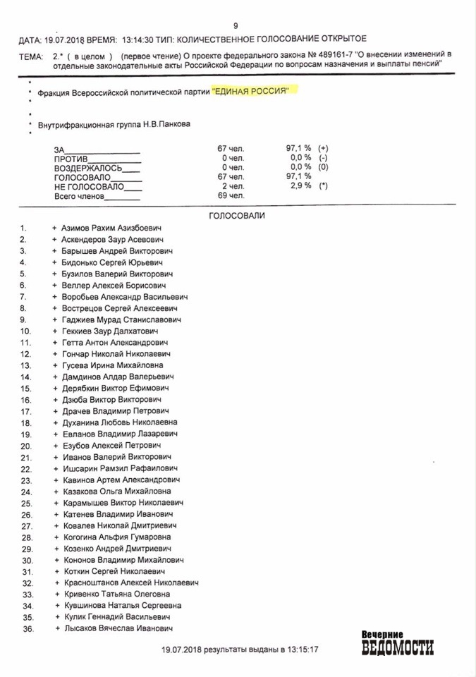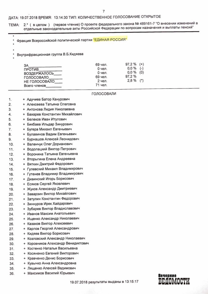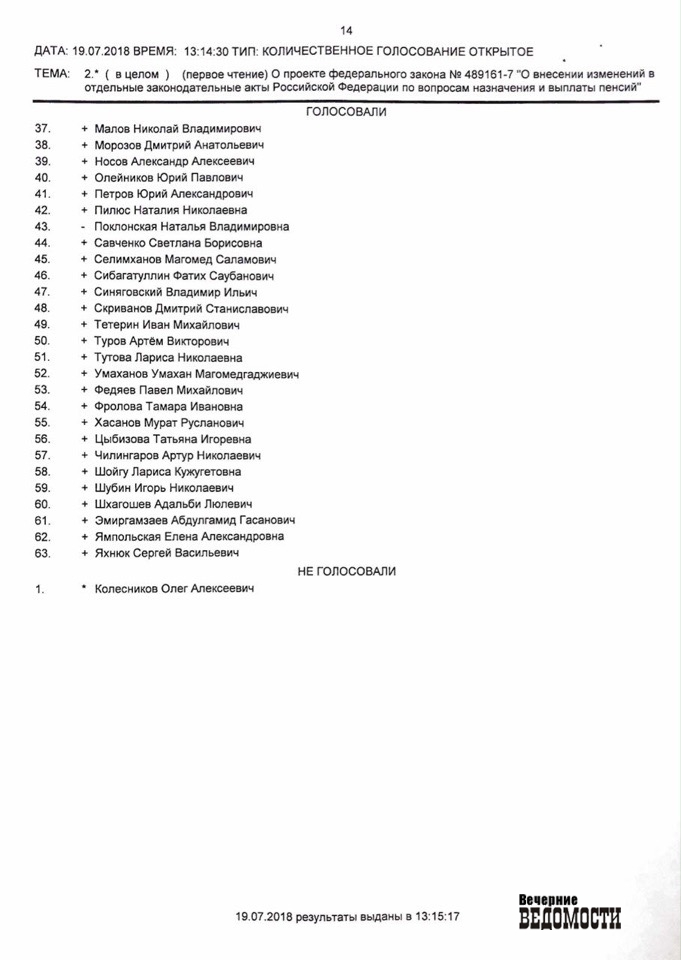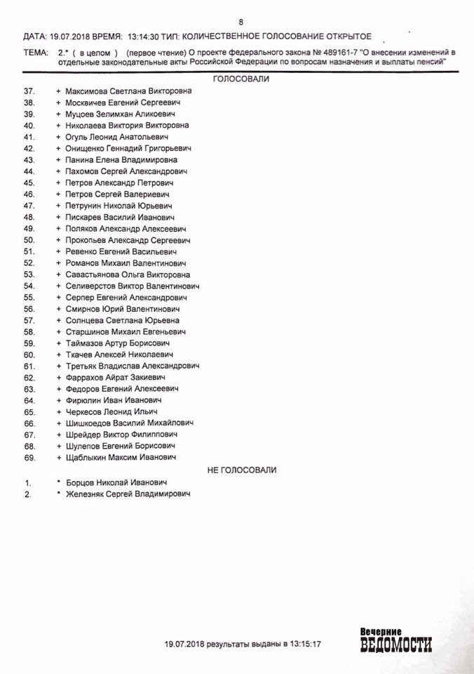 Госдума дала добро пенсионной реформе. Списки голосовавших
