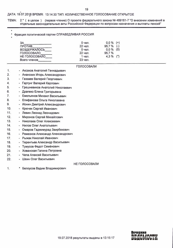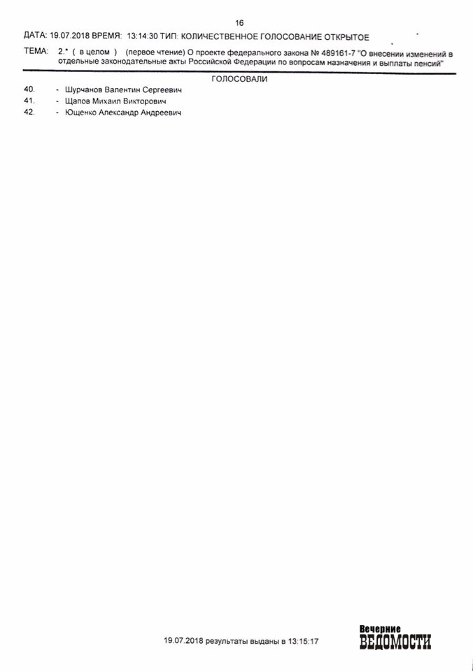 Также проголосовали против повышения пенсионного возраста члены фракции «Справедливой России» (22 депутата, в их числе уралец Дмитрий Ионин) и КПРФ (42 парламентария).