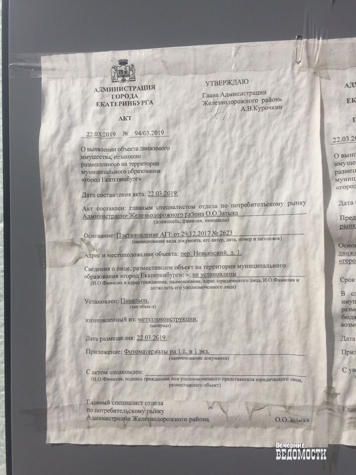 Так, не включены в схему размещения нестационарных торговых объектов павильон с шаурмой «Kebab KING» (пер. Невьянский 1/ 1) и соседняя точка общепита «Иранская шаума» (пер. Невьянский 1/ 2). Рядом также стоит пустой павильон площадью около 35 квадратных метров. Согласно акту, его владельцу был дан срок до 1 апреля добровольно вывезти его, но конструкция продолжает стоять на месте.