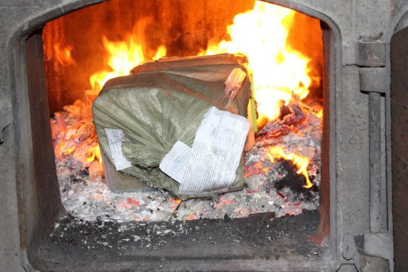 Накануне, 7 мая, в Екатеринбурге транспортные полицейские уничтожили более 30 кг наркотических средств, которые являлись вещественными доказательствами по уголовным делам.