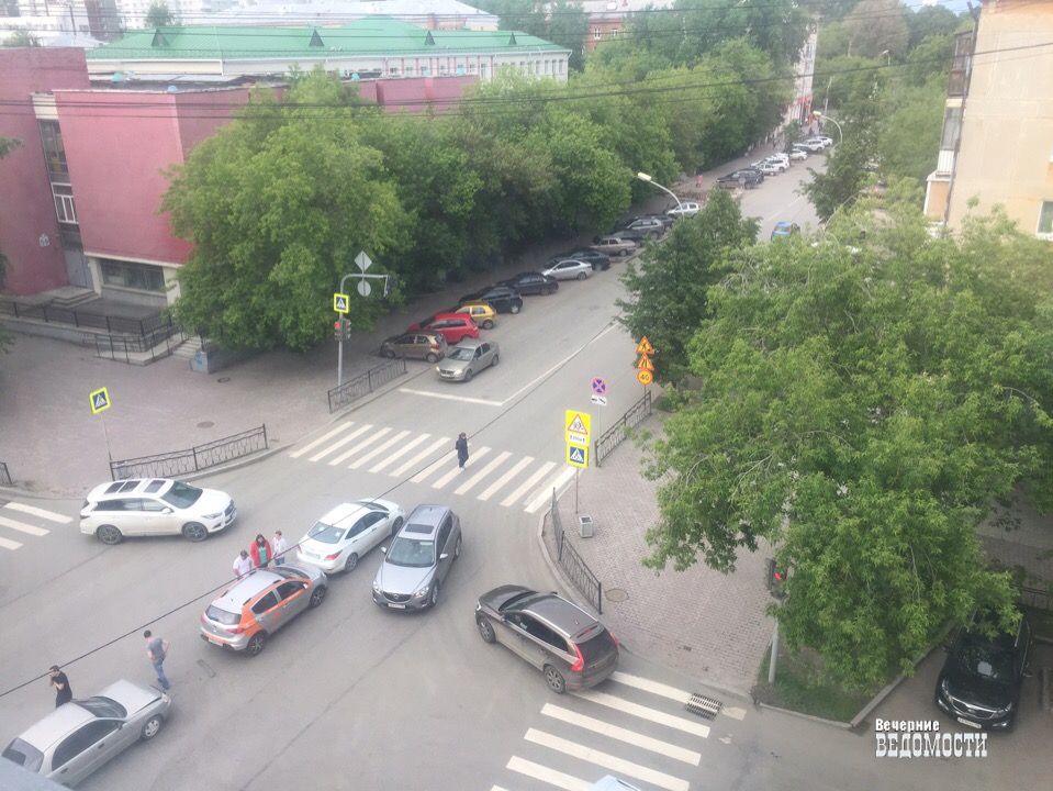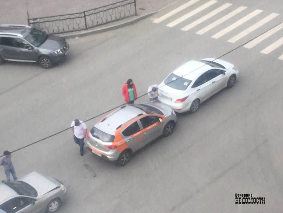 В центре Екатеринбурга вечером, 6 июня, около 18:35 произошло ДТП с участием трех автомобилей. Hyundai Solaris ехал по улице Первомайской, притормозил на перекрестке с Мичурина перед образовавшимся дорожным затором, после чего в заднюю часть транспортного средства врезался «каршеринговый» автомобиль, а уже в него – Chevrolet Lanos.