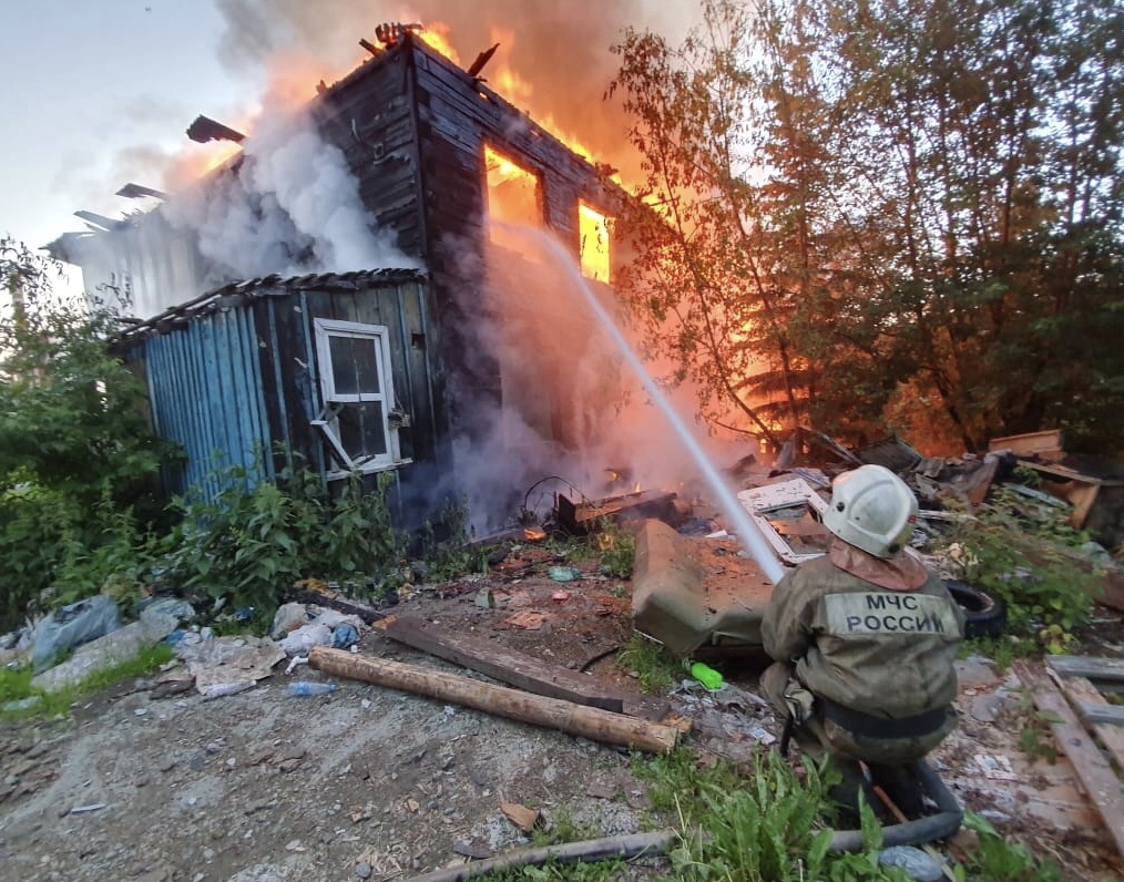 Пристанище для бомжей: в Екатеринбурге загорелся деревянный дом