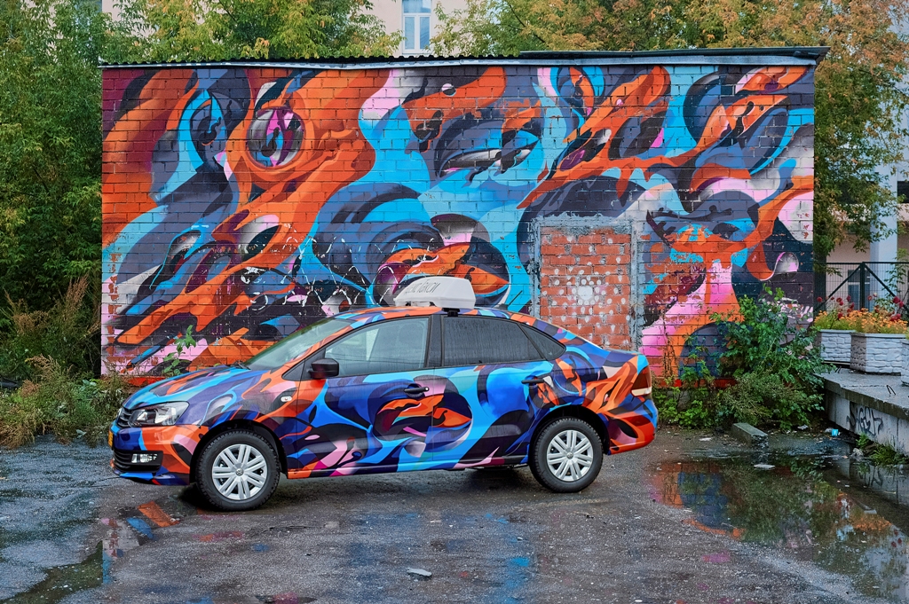 На дорогах Екатеринбурга появились такси, расписанные уличными художниками