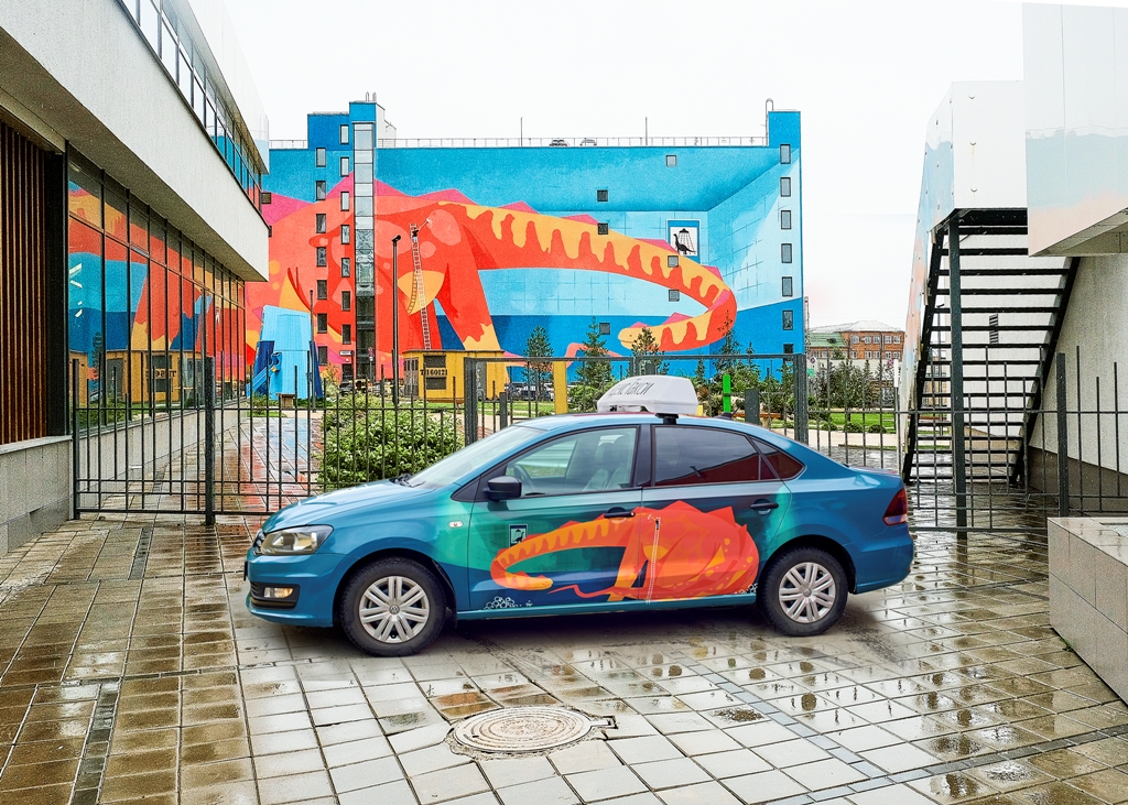 «Машины такси – неотъемлемая часть городской среды, а пейзаж современного города невозможен без уличного искусства. Так родилась идея разместить на бортах автомобилей знаковые работы уральских street art художников», — говорит один из организаторов фестиваля «УРА! УРАЛ!» Катерина Доник.