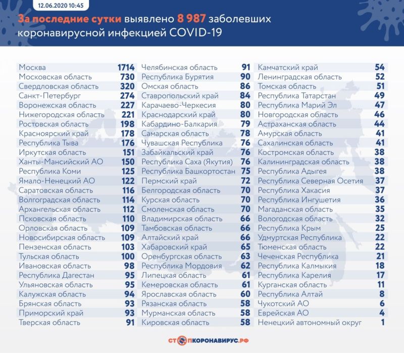В России выявили еще 8987 случаев коронавируса