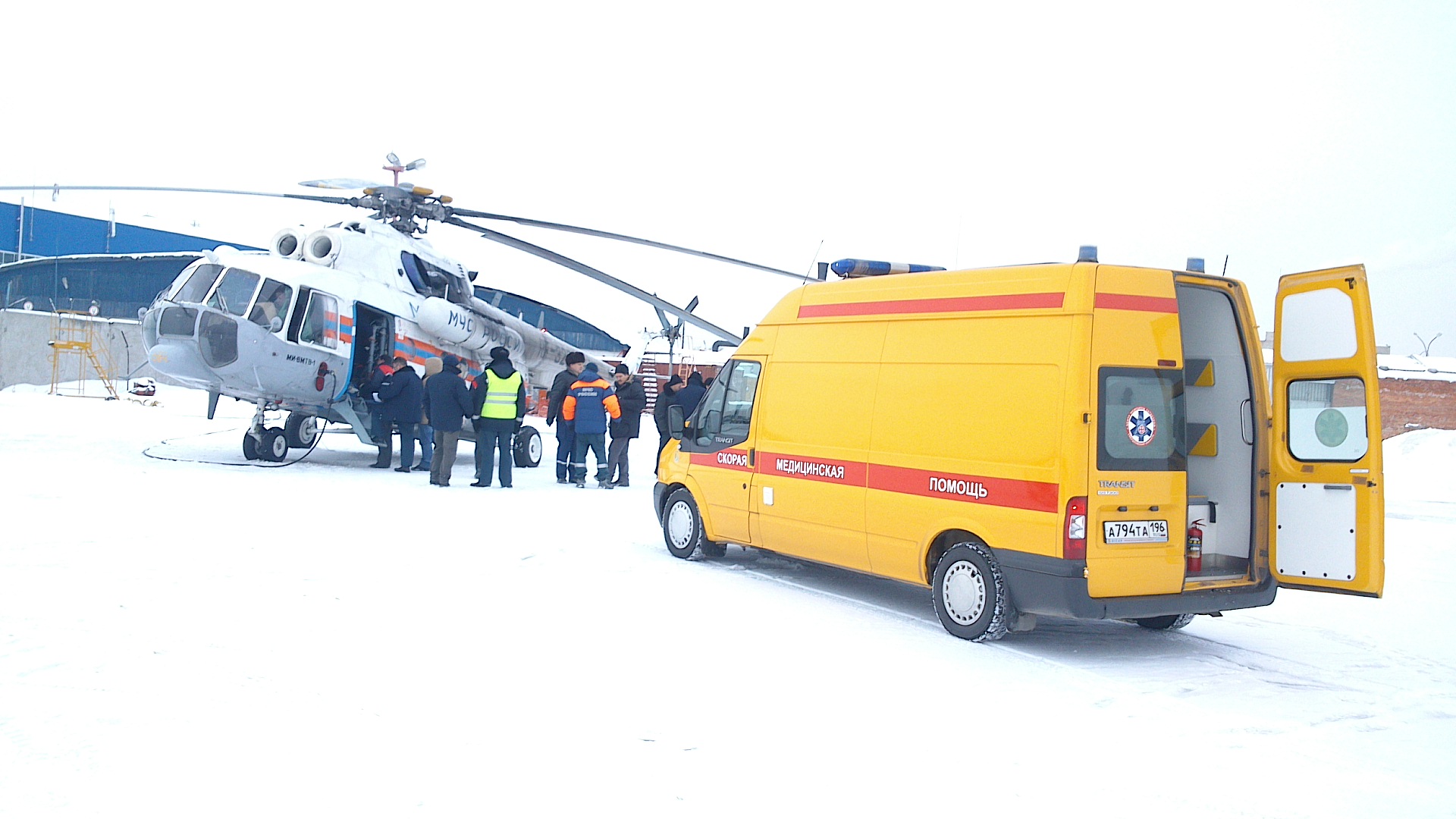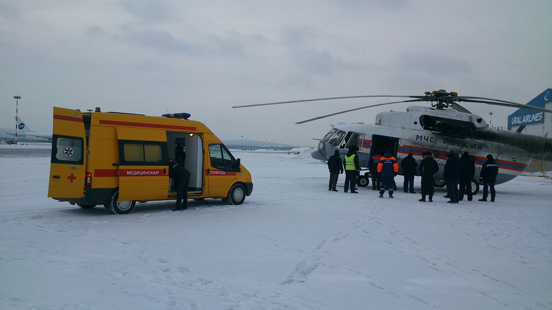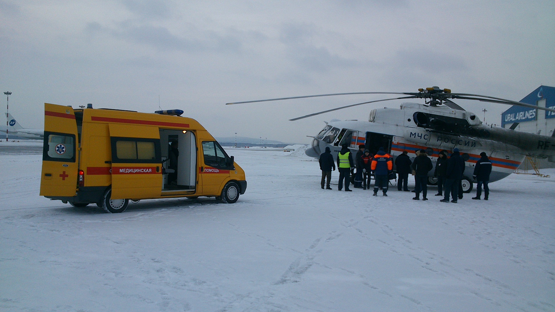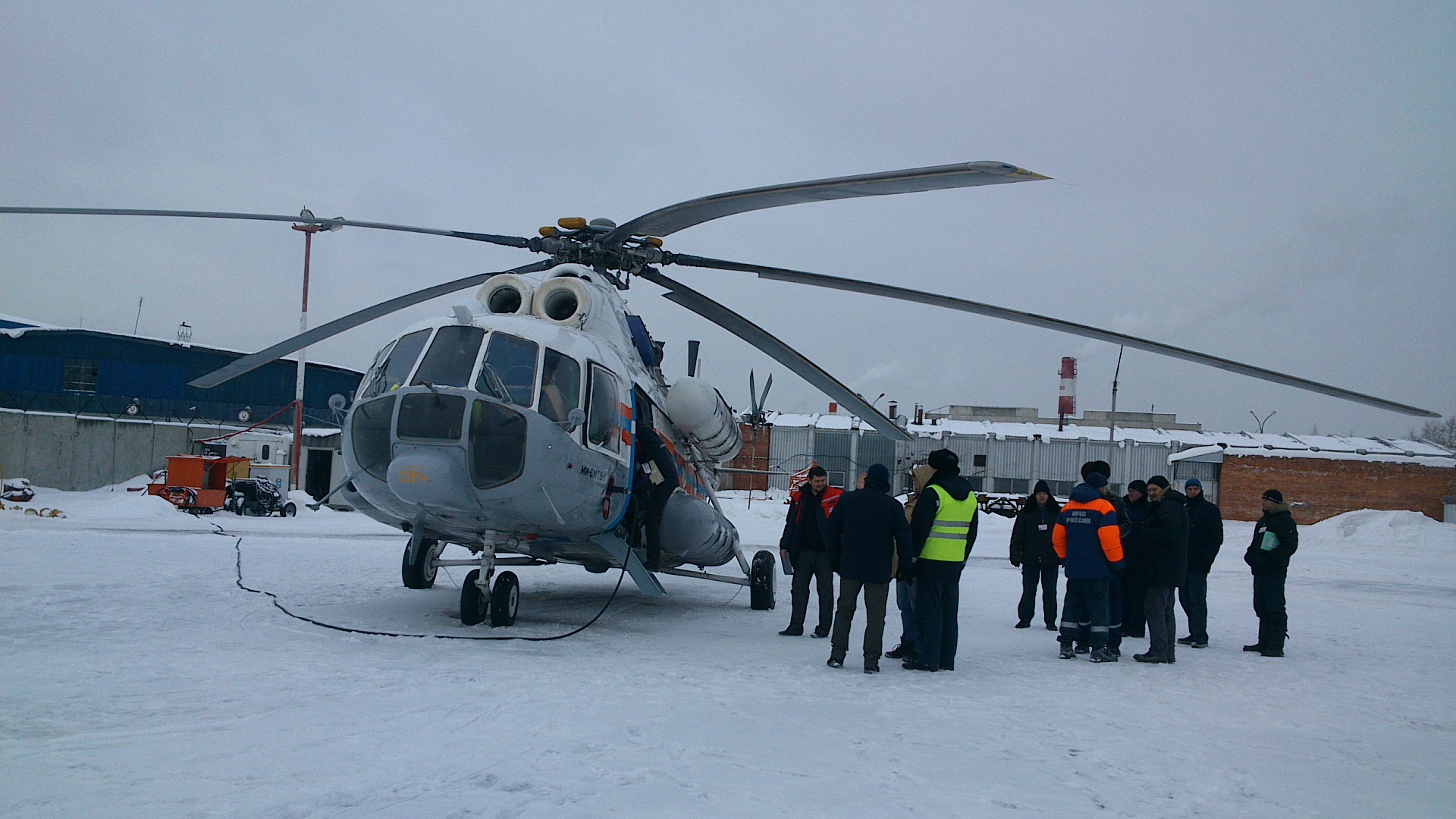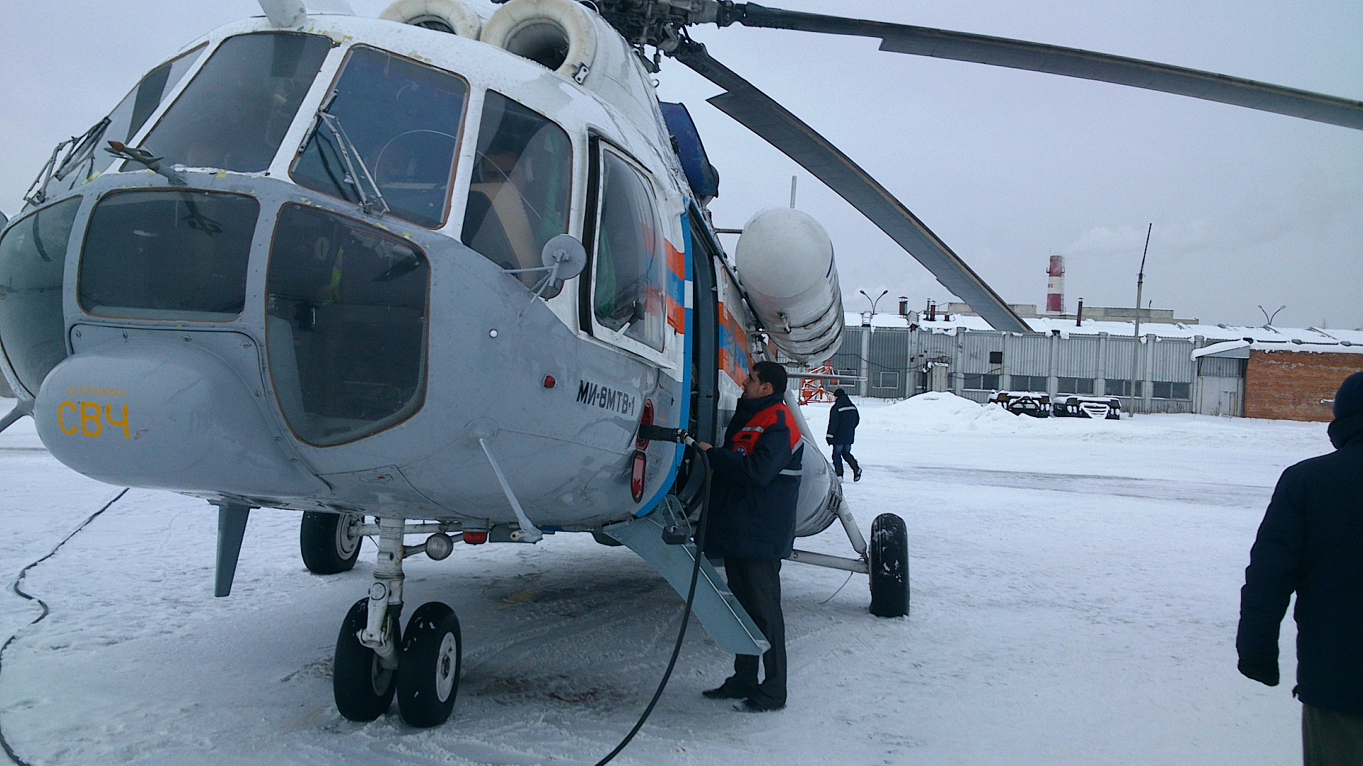 На борту вертолета Ми-8 находятся спасатели, специалисты Территориального центра медицины катастроф, а также специальный медицинский модуль для транспортировки тяжелобольных.