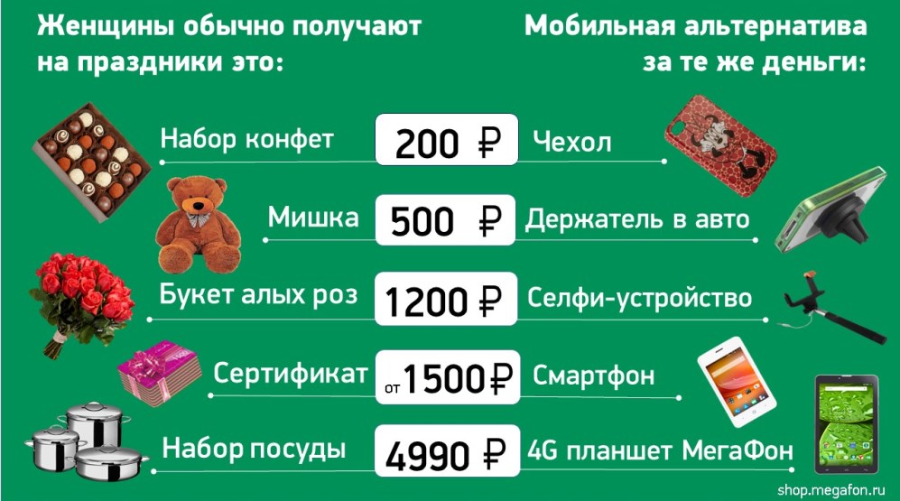 «Впереди три приятных праздника, в которые хочется порадовать любимых. Порой при планировании покупок люди думают, что приобретение мобильных гаджетов и аксессуаров ударит по их кошельку. Для того чтобы развенчать этот миф, а также помочь свердловчанам выбрать оригинальные и при этом полезные подарки по привлекательной цене, мы составили топ выгодных мобильных презентов для мужчин и женщин», – отмечает руководитель по развитию бизнеса на массовом рынке «МегаФона» на Урале Сергей Алферов.