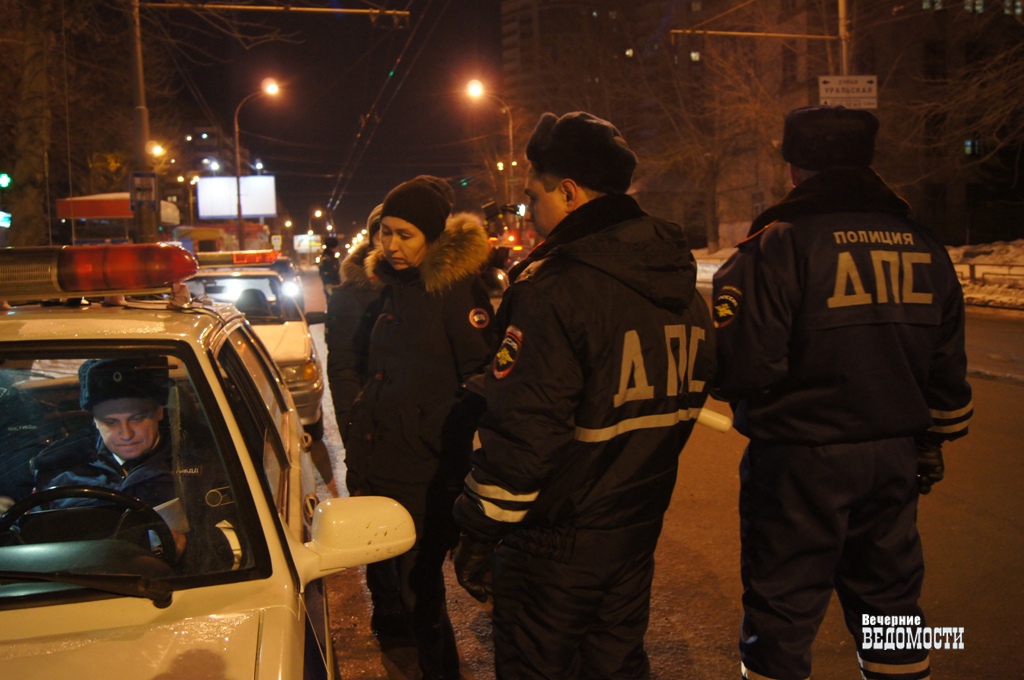 В ночь с 22 на 23 февраля на «дежурство» с ГИБДД вышли журналисты и члены Общественного совета при ГУ МВД России по Свердловской области. С 23:00 до 04:00 они контролировали работу инспекторов на Сортировке в районе перекрестка Бебеля – Автомагистральная, на ВИЗе на Токарей – Крауля, в центре Екатеринбурга недалеко от железнодорожного моста по улице Малышева и на Советской – Уральской.