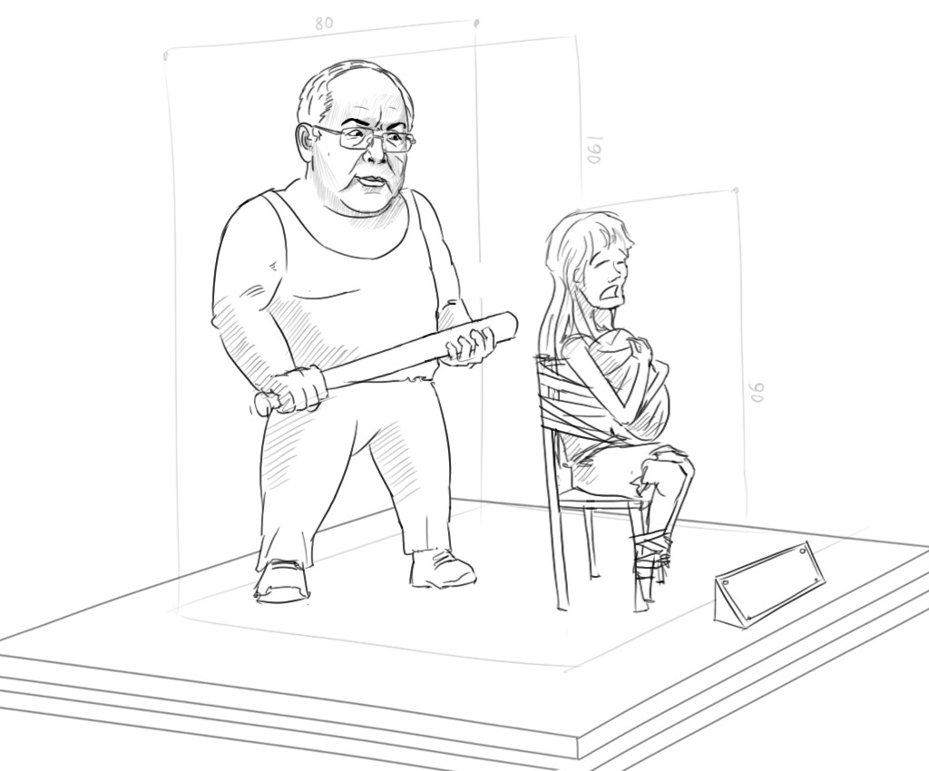 Авторы идеи подготовили три разных проекта памятника. Моделью для статуи коллектора послужил владелец коллекторского агентства «Центр долговой безопасности» Леонид Гункевич.