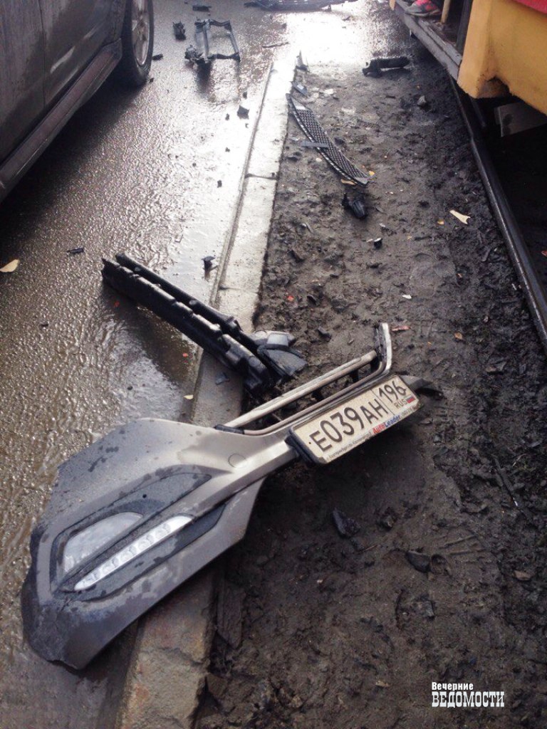 Корейский внедорожник протаранил трамвай в Екатеринбурге