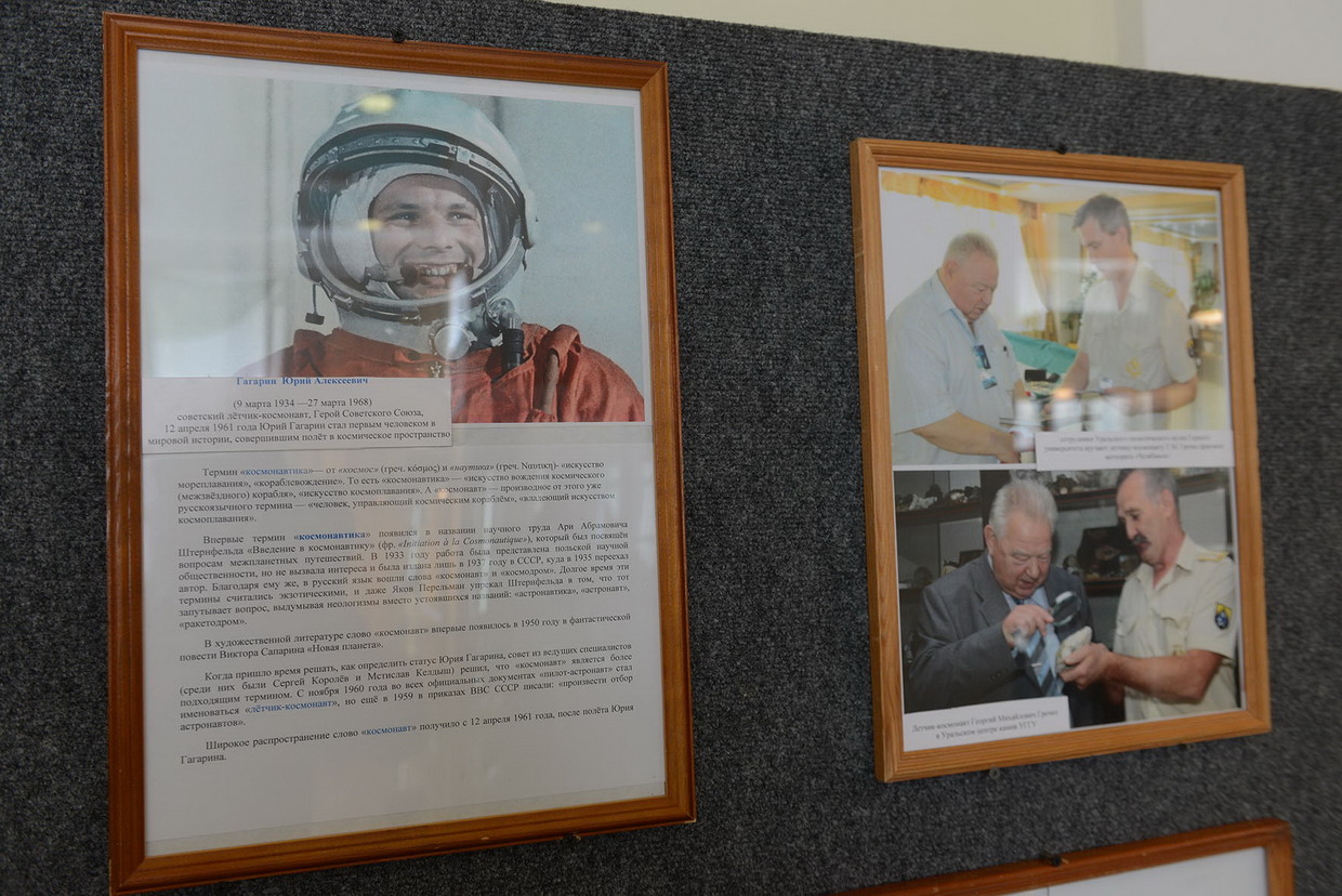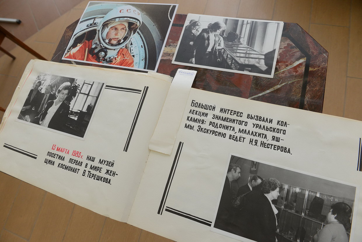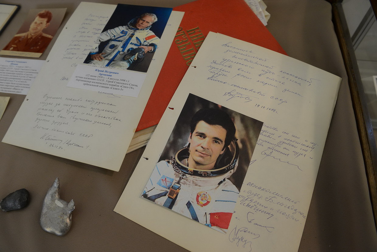 Большое внимание на выставке уделено летчикам-космонавтам СССР, которые в разные годы посетили Уральский геологический музей и поделились своими впечатлениями на страницах книги отзывов. Летчиков-космонавтов СССР Георгия Гречко, Вячеслава Зудова, Юрия Артюхина, Германа Титова, Юрия Малышева, Валентину Терешкову и многих других покорителей космоса покорили природные богатства Урала.