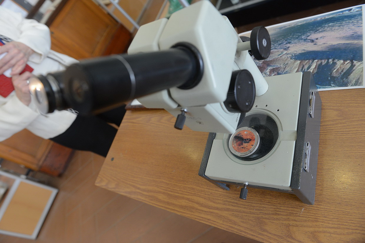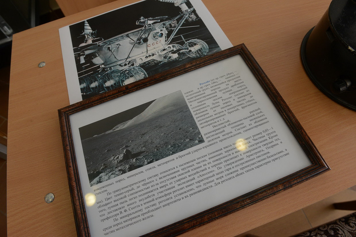 – По своему составу и цвету они заметно различаются – лунный грунт имеет светло-серую окраску, это риголит, т.е. покров. Это подушка из выветренных пород, обломков метеоритов и лунной поверхности и базальтов, – поясняет директор музея Дмитрий Клейменов. – Земной аналог этих пород – полевошпатовая порода анортозит. Сам лунный грунт имеет очень много вредных свойств. Еще первые астронавты отмечали, что он прилипает к подошве, поднимается облачками пыли, электризуется. Из-за этих свойств лунного грунта у нас досрочно прекратил свою деятельность «Луноход-2». Попав в кратер и попытавшись выбраться из него, луноход зацепил лунный грунт на солнечную батарею, грунт попал на приборы, и произошел перегрев. Поверхность Марса имеет красно-бурую окраску. Земные минералы гематит и гетит, оказывается, есть и на поверхности Марса. Именно они придают такую необычную окраску. Также на Марсе есть вода, и грунт этой планеты, по мнению исследователей, вполне подходит для выращивания земных сельскохозяйственных культур.