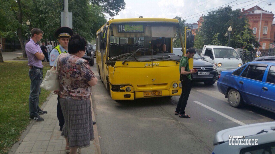 Внедорожник столкнулся с маршруткой напротив полицейского главка в Екатеринбурге (ФОТО)
