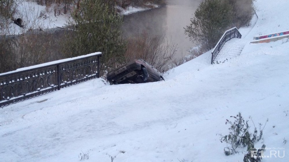 Очевидцы говорят, что рядом с мостом располагается парковка. Не исключено, что водитель просто не справился с управлением и угодил в сугроб.