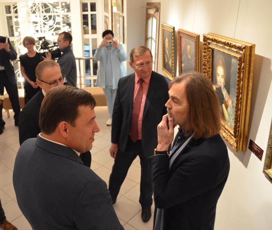 В Екатеринбургской галерее современного искусства состоялось торжественное открытие выставки Никаса Сафронова. Как сообщают в департаменте информационной политики губернатора, художник представил уральцам 105 лучших работ. В день открытия Никас Сафронов показал экспозицию губернатору Свердловской области Евгению Куйвашеву.