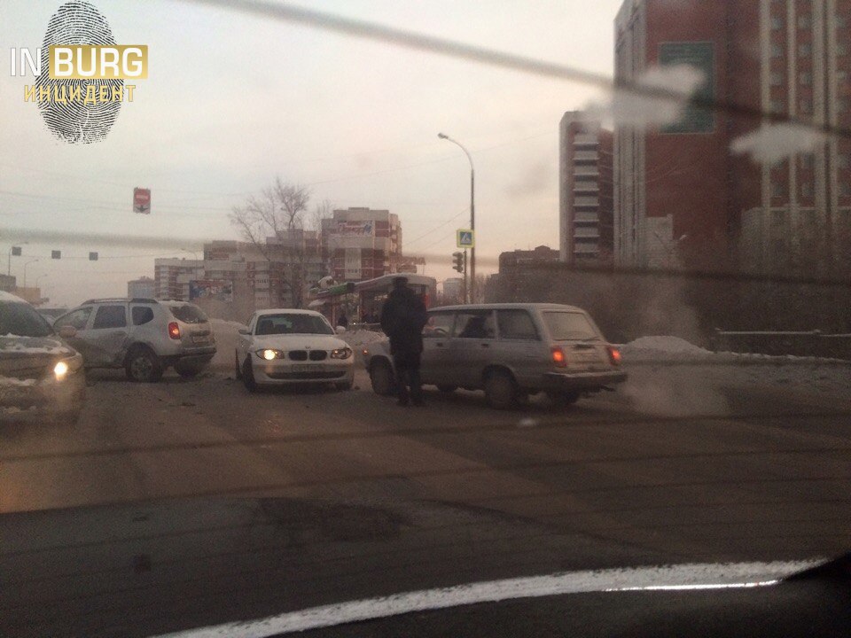 Утром 18 ноября в Екатеринбурге на перекрестке улиц Опалихинская и Готвальда столкнулись четыре легковушки. Об этом сообщили очевидцы в социальных сетях около 11 часов дня. Участниками аварии стали автомобили Renault, Toyota, BMW и ВАЗ-2104.