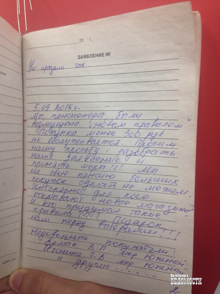 Напомним, в сентябре-октябре этого года граждане стали жаловаться на установление минимального лимита суммы покупки, согласно которому покупатели, желающие приобрести в «Светофоре» товар на общую сумму менее 300 рублей, не обслуживались, товары им не продавались. В частности, подобные обращения поступали из Туринска, Ирбита, Арамиля и Березовского.