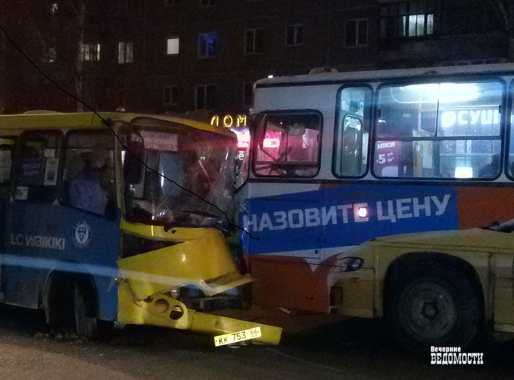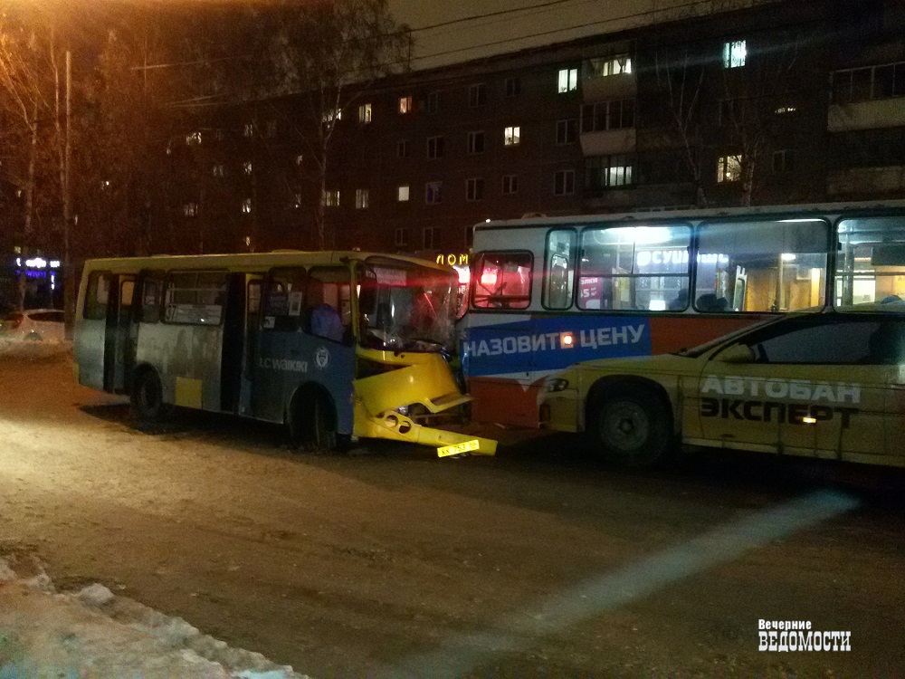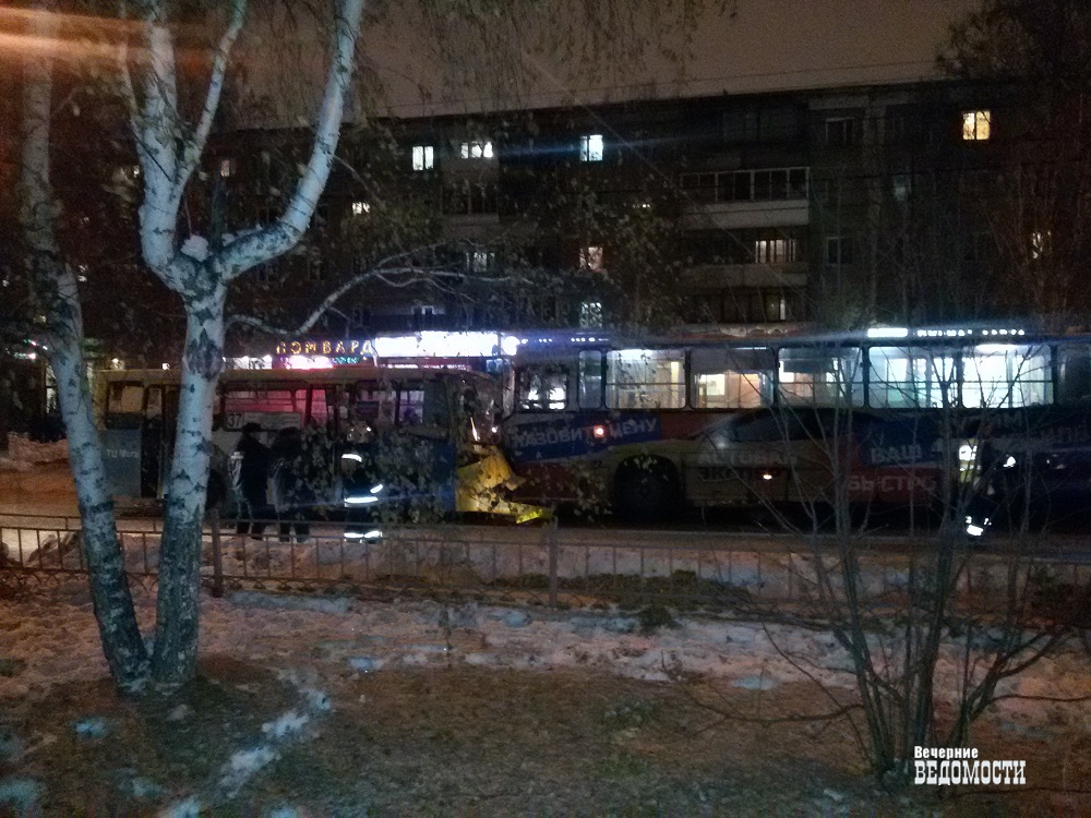Около 19:30 в Екатеринбурге, на улице Академика Бардина, коммерческий автобус 37-го маршрута столкнулся с 54-м муниципальным автобусом. ДТП произошло между остановками «Решетникова» и «Амундсена». Маршрутка двигалась в сторону улицы Амундсена. Судя по расположению автобусов на проезжей части, водитель коммерческого транспорта совершал обгон, не справился с управлением и лоб в лоб столкнулся с автобусом № 54.