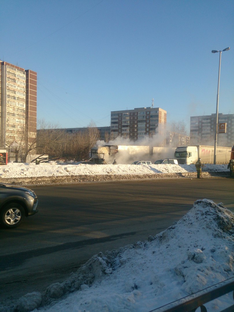 «Около ТЦ «Комсомолл» горит фура», – сообщили горожане.