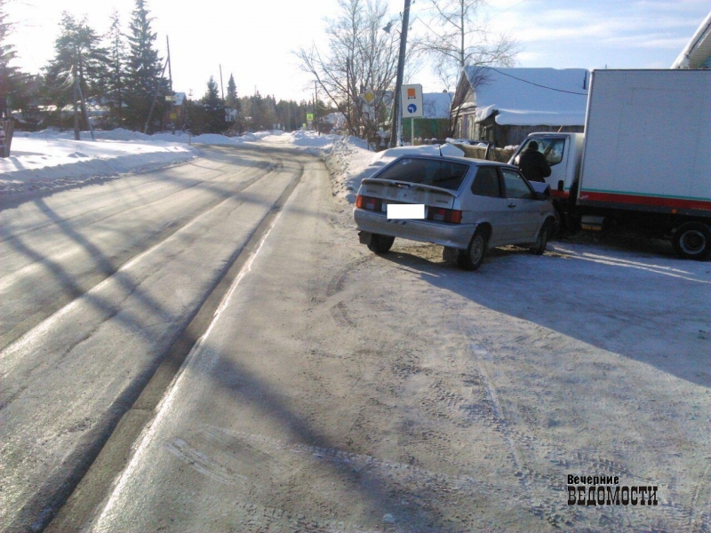 В Ревде водитель ВАЗ-2114 не справился с управлением и врезался в припаркованный автомобиль «Мицубиси-Кантер».