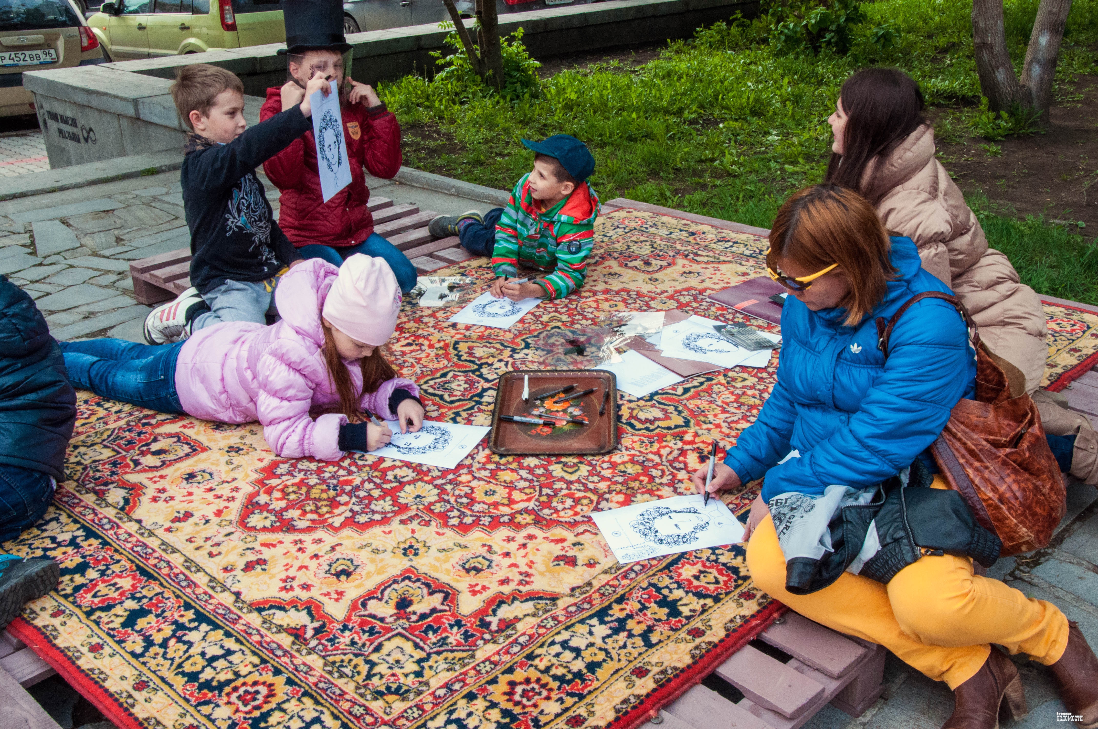 Весь вечер у памятника работал «Открытый микрофон», где каждый желающий мог прочесть любимые стихи. Кроме того, дети и взрослые оставили свои поздравления на «Поэтической стене» и попробовали нарисовать великого поэта.
