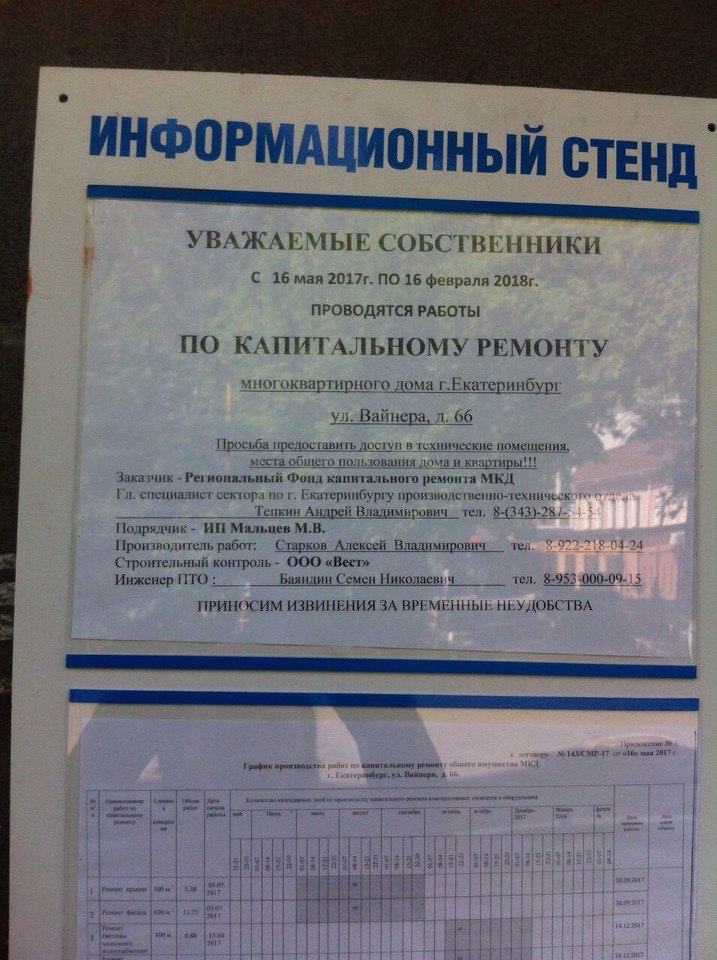 Четырехэтажный дом 1939 года постройки, расположенный в самом центре Екатеринбурга на Вайнера, 66 (за пабом «Британия»), на днях с удивлением узнали, что этим летом к ним придут рабочие. Выяснилось, что дом попал в программу капремонта – согласно документам, рабочие отремонтируют фасад, кровлю, электрику, канализацию и систему теплоснабжения и горячего и холодного водоснабжения. Если в другом доме рабочим были бы рады, то здесь отнеслись к грядущим работам настороженно.