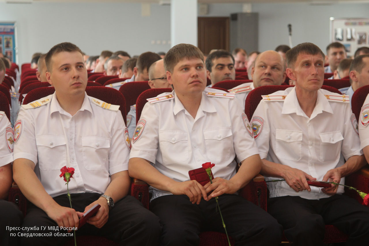 За заслуги в поддержании законности и правопорядка на вверенных территориях Михаил Бородин вручил нагрудные знаки «За отличную службу в МВД» I степени начальнику ОВД Серова полковнику полиции Олегу Якимову, II степени — руководителю ОВД Кушвы подполковнику полиции Егору Ермакову и главе ОВД Краснотурьинска полковнику полиции Валерию Стребкову.