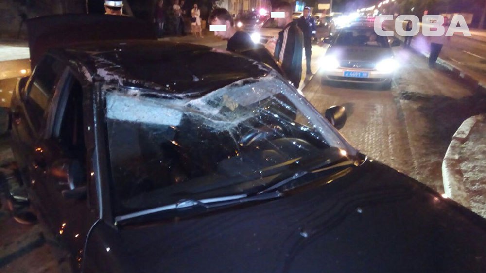 Как сообщает пресс-группа службы спасения «СОВА», перед тем как опрокинуться, автомобиль врезался в трамвайную остановку и снес дорожный знак.