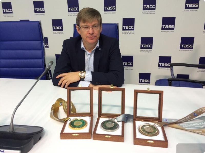 «Награды изготавливали здесь, в Свердловской области, в работе были использованы те минералы, которые всегда ассоциировались именно с Уралом, в частности со Свердловской областью. Это непосредственно малахит и змеевик. Победители получат малахитовые награды, обладатели вторых и третьих мест — медали из змеевика. Вес каждой составляет 162 грамма, на обратной ее стороне мы можем видеть символ кекусинкай», — рассказал генеральный секретарь Всемирного союза кекусинкай Сергей Суворов.