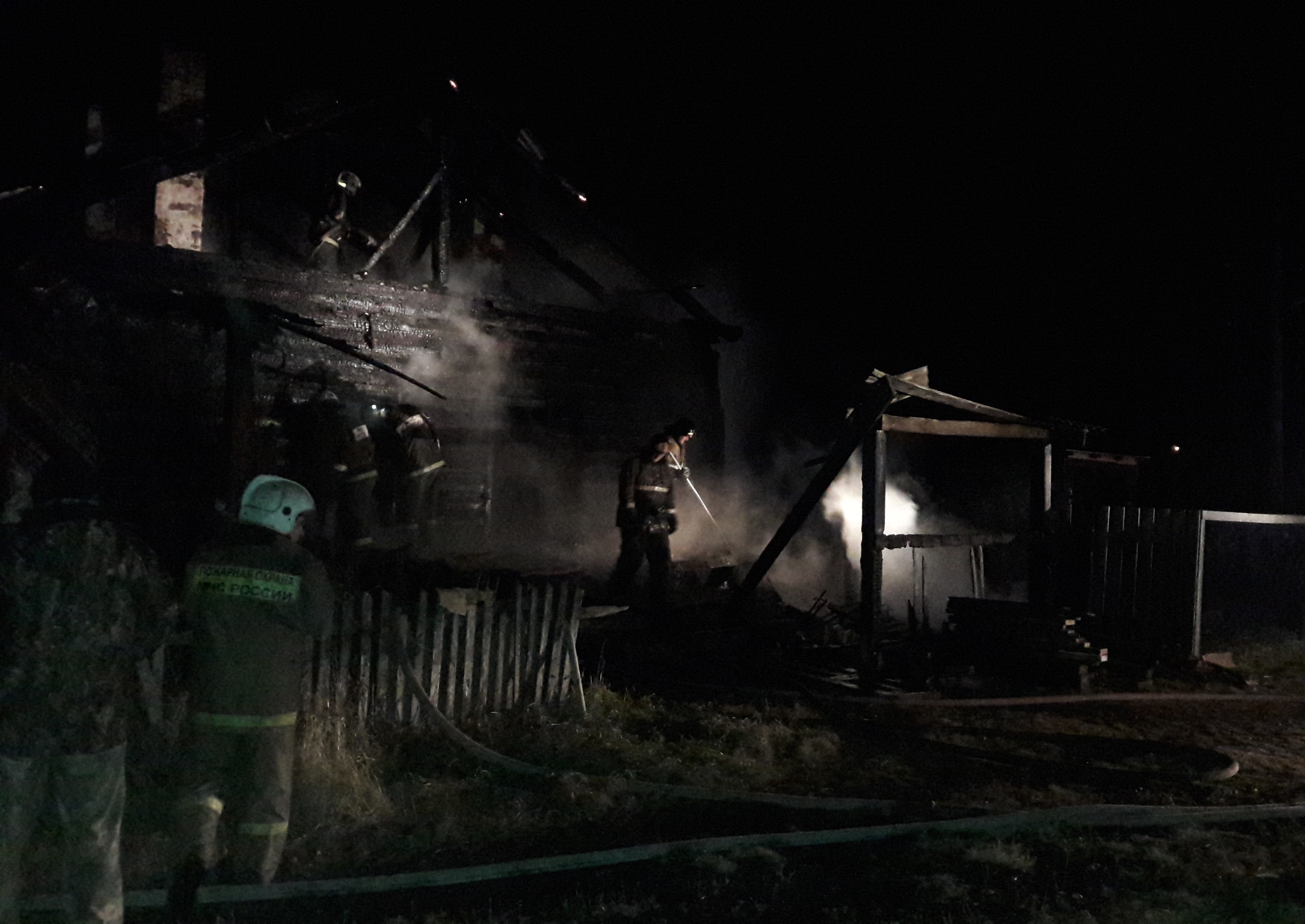 «К этому моменту уже открытым пламенем горела входная группа и кровля жилого дома, деревянные конструкции способствовали быстрому распространению огня», — рассказали в пресс-службе.