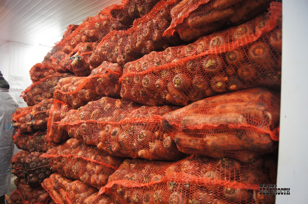 На складе — тонны моркови, картошки и свеклы. «Сырье» перед отправкой в цеха тщательно промывают, после чего оно идет на обработку.