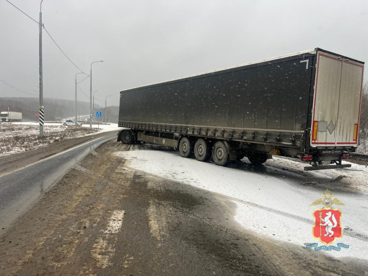 После снегопада ситуация на федеральных трассах Свердловской области сложилась непростая. ГИБДД сообщает о двух ДТП с участием большегрузов.