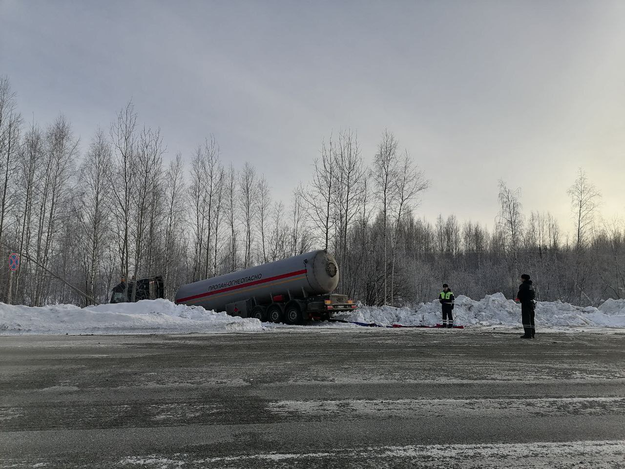 На 347-м километре автодороги «Екатеринбург – Нижний Тагил – Серов», в районе Серова, съехал в кювет грузовик с пропаном.