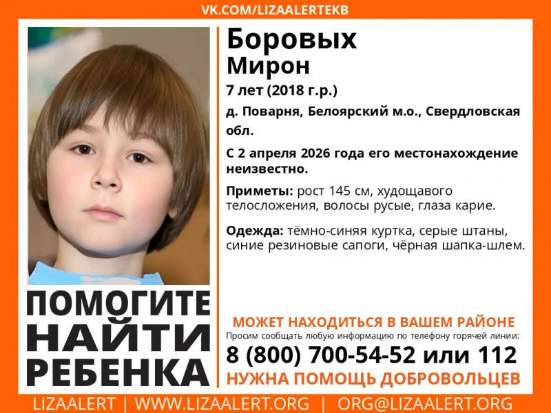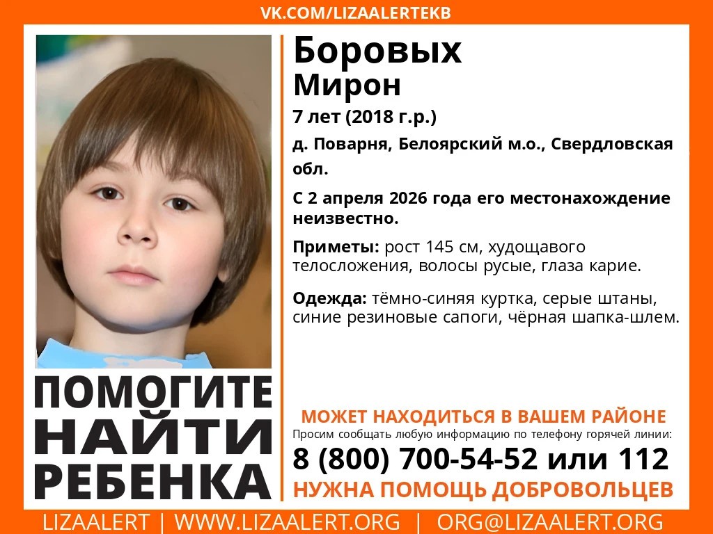 В деревне Поварня Белоярского района Свердловской области пропал семилетний Мирон Боровых. 2 апреля он не вернулся домой.
