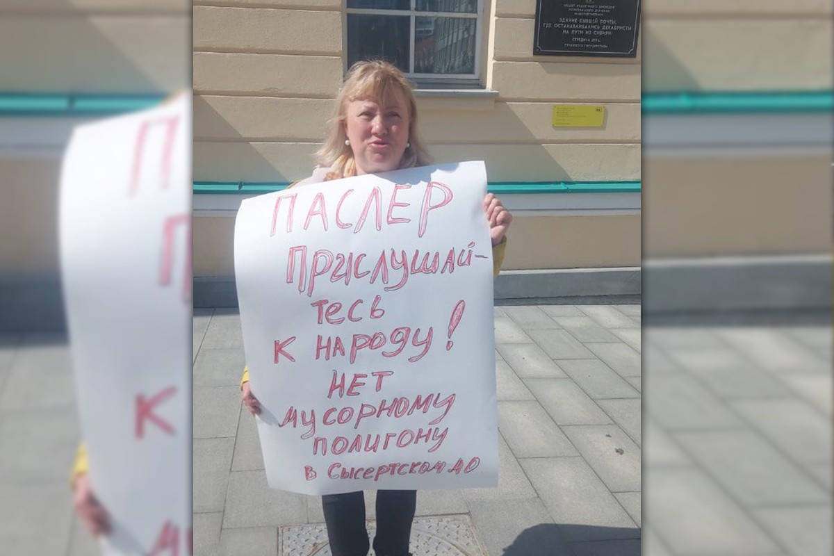 Сегодня в одиночный пикет вышла жительница Сысертского района, на сельскохозяйственных землях которого планируется строительство мусорного производства. Она обратилась к новому руководителя региону Денису Паслеру, пожаловавшись на то, что его предшественник на этом посту, а также находящийся сейчас в СИЗО экс-министр ЖКХ региона Николай Смирнов игнорировали сысертчан и не соглашались на встречу по вопросу размещения мусорного полигона «Екатеринбург-Юг».