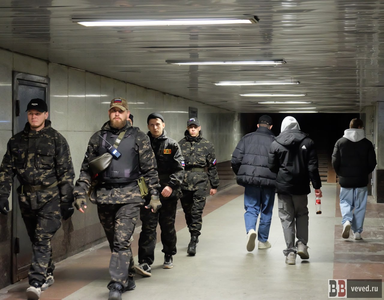 На кадрах видно, как одного из мужчин уложили на землю и удерживали несколько человек в жилетах с нашивками «Добровольная народная дружина». Другого мужчину отвели в сторону — он сопротивлялся и утверждал, что участники конфликта «бьют его жену».
