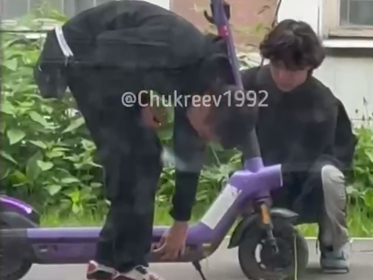 В Екатеринбурге заметили двух молодых людей, которые снимали с кикшерингового электросамоката номера. Судя по всему, делали они это не просто так.
