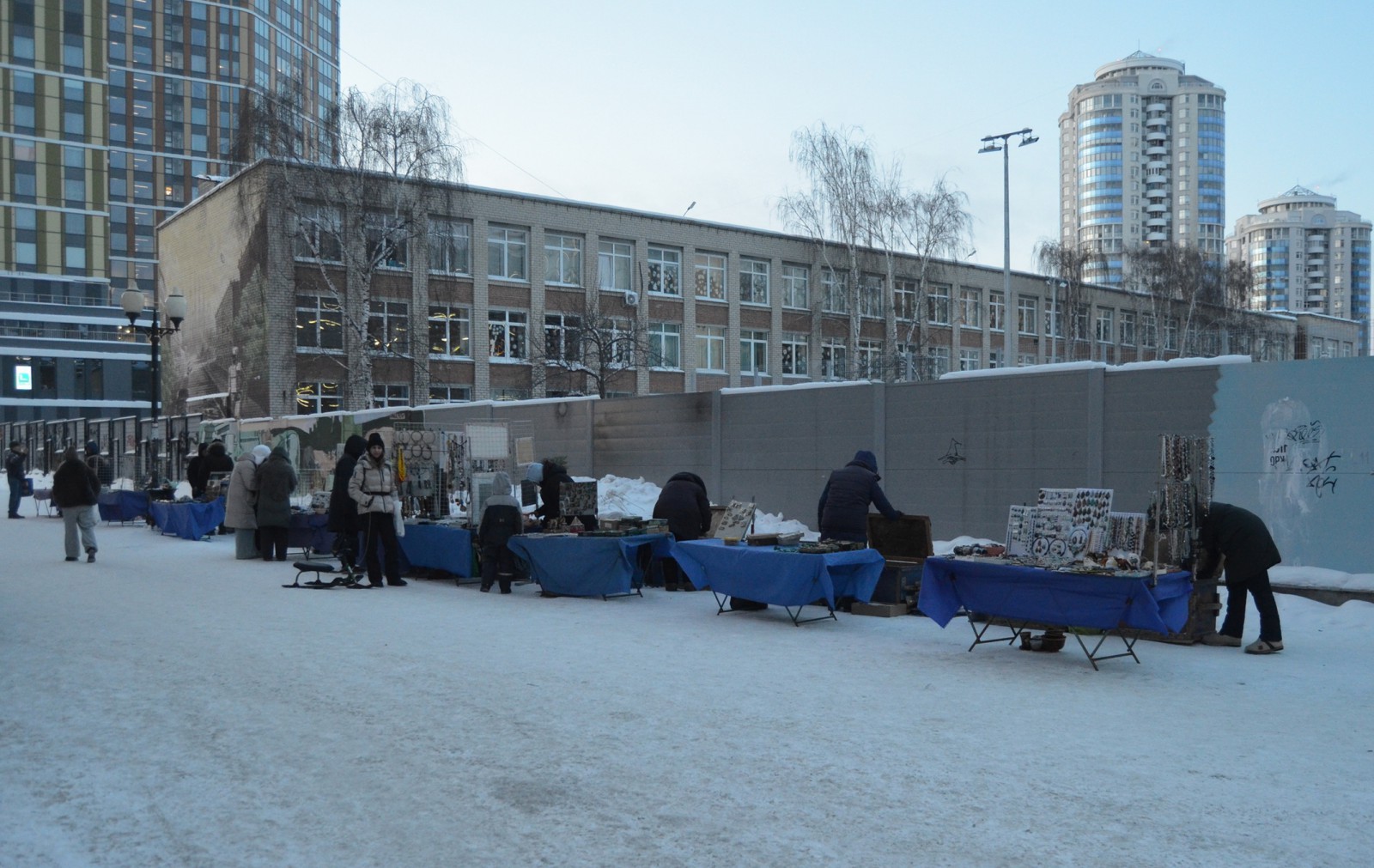 В Екатеринбурге художников и торговцев сувенирами в очередной раз «выдавили» на новое место. Теперь они торгуют своими работами напротив многоуровневого паркинга ТРЦ «Гринвич», в безымянном переулке между улицами Вайнера и Хохрякова.