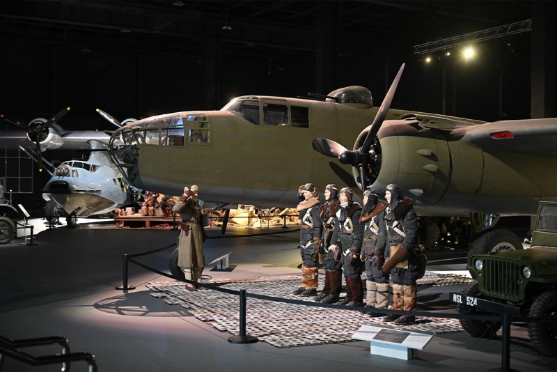Кроме этого, государственные правозащитники смогли увидеть будни летчиков и технического персонала аэродромов, воссозданные в жанровых зарисовках и композициях, а также обслуживающую технику, орудия, зенитные прожекторы, авиадвигатели и другие средства ПВО.