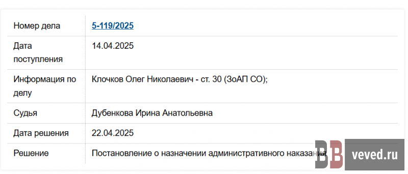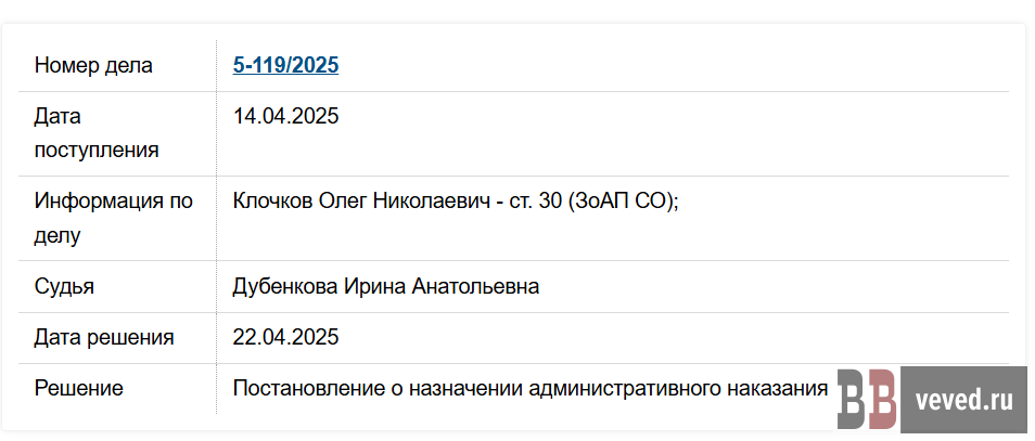 Карточка дела против Клочкова на сайте суда.