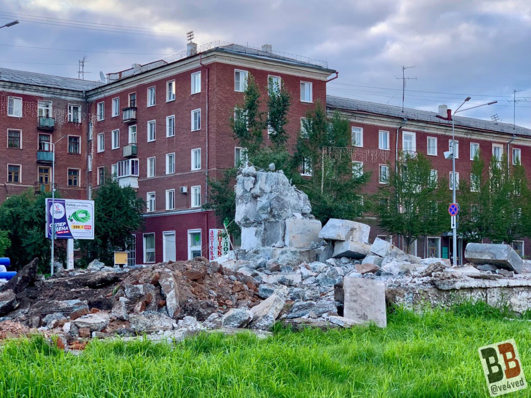 Постамент памятника Ленину в Ревде после демонтажа