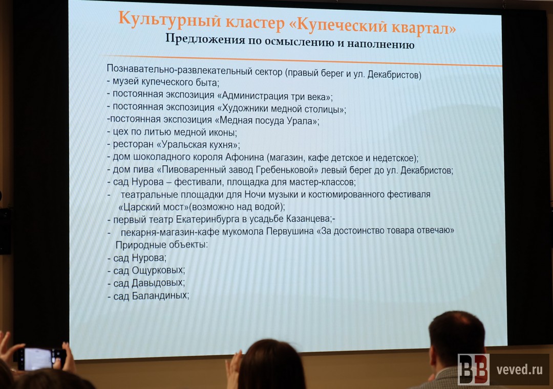 Перспективы создания «Купеческого квартала» обсудили в Екатеринбурге. На круглом столе, организованном целом рядом организаций совместно с представителями администрации города и городской думы, было рассказано об исторической ценности квартала в районе Царского моста и о том, как эту историческую ценность использовать в современных условиях.
